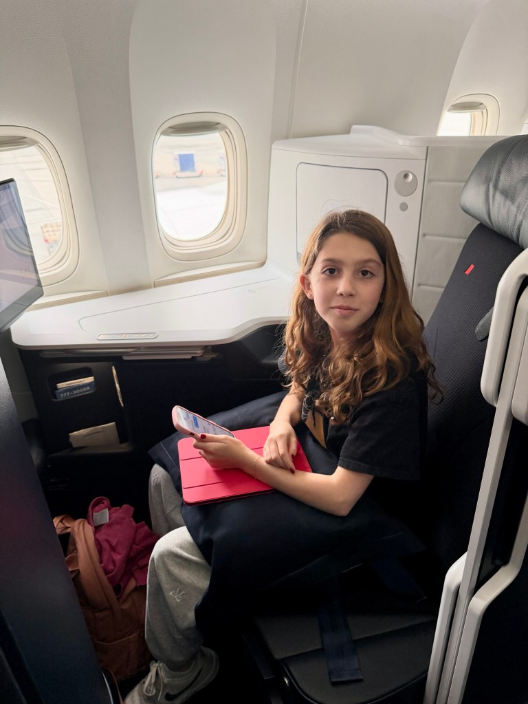 And though we have been hearing horror stories about TSA lines, I am here to say there was ZERO line in the international terminal at LAX. The unpaid agents could not have been nicer. As we walked through the terminal, we saw few passengers. It was like we were there at 2a instead of 2p. Few people were in the Air France lounge either, so we situated ourselves in a cozy seating area for four guests and our grandchildren went directly to the macaron buffet and were very happy travelers.