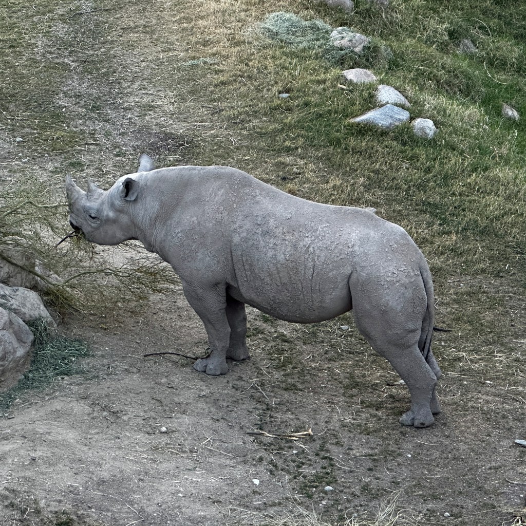 I've mentioned previous, the zoo has a young mating pair of Black Rhinos, but the staff have kept them separate until recently. If young rhinos grow up together, they usually will not mate.