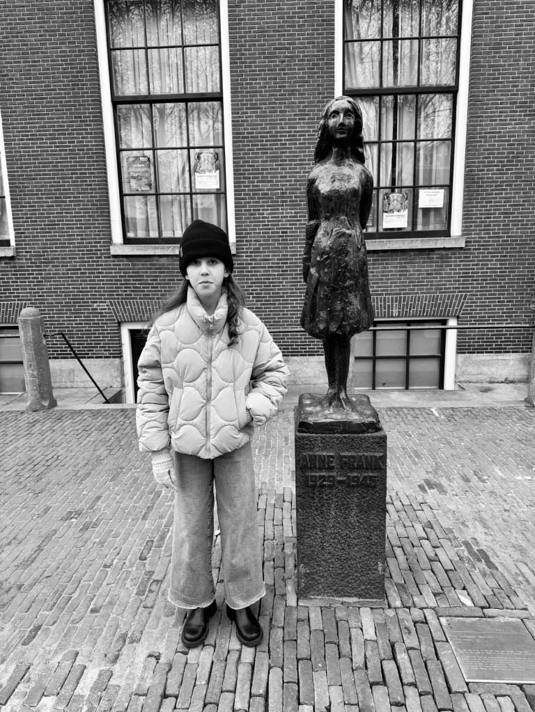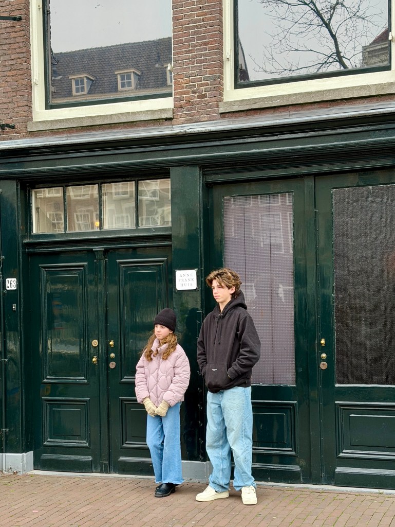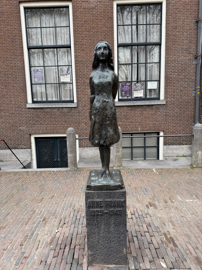We had breakfast at the hotel, then walked (20 minutes) to Anne Frank House. It was super chilly this morning. I wore a wool sweater, a golf jacket… and then added a rain jacket and a scarf. By the end of the day, I had bought a warm beanie.