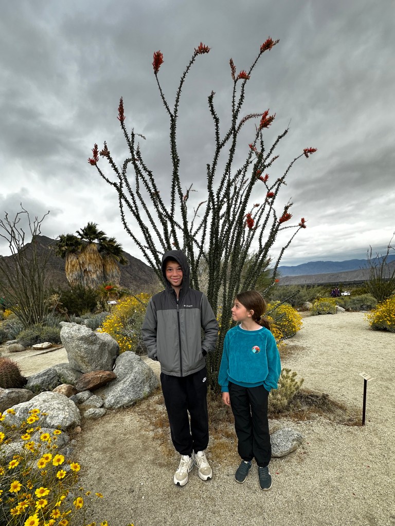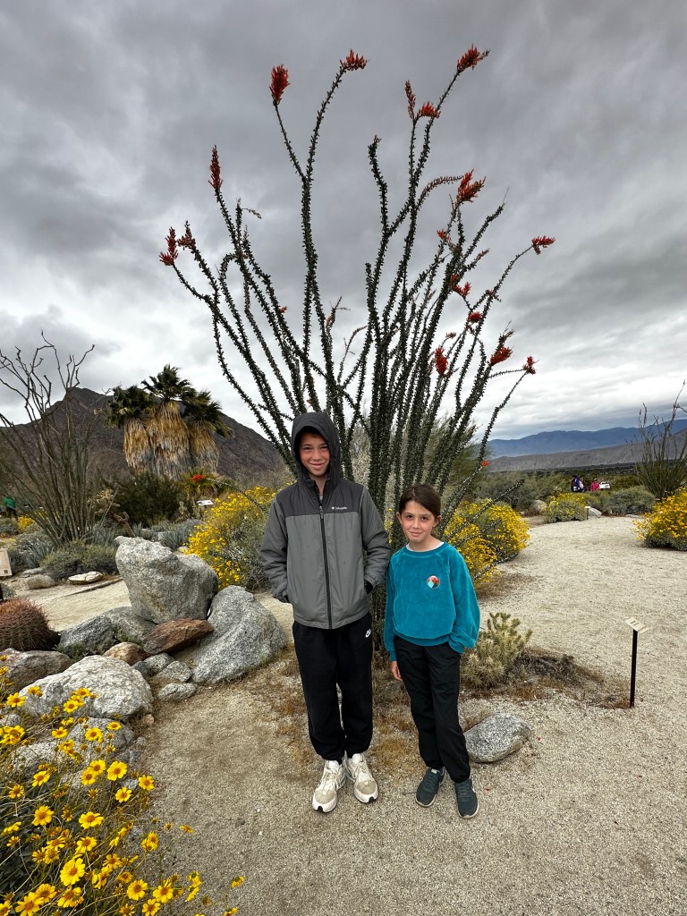 After our visitor center tour, we walked around the trails with signs identifying the many flowering trees, plants and cacti. There was some posing, but we were very cold.