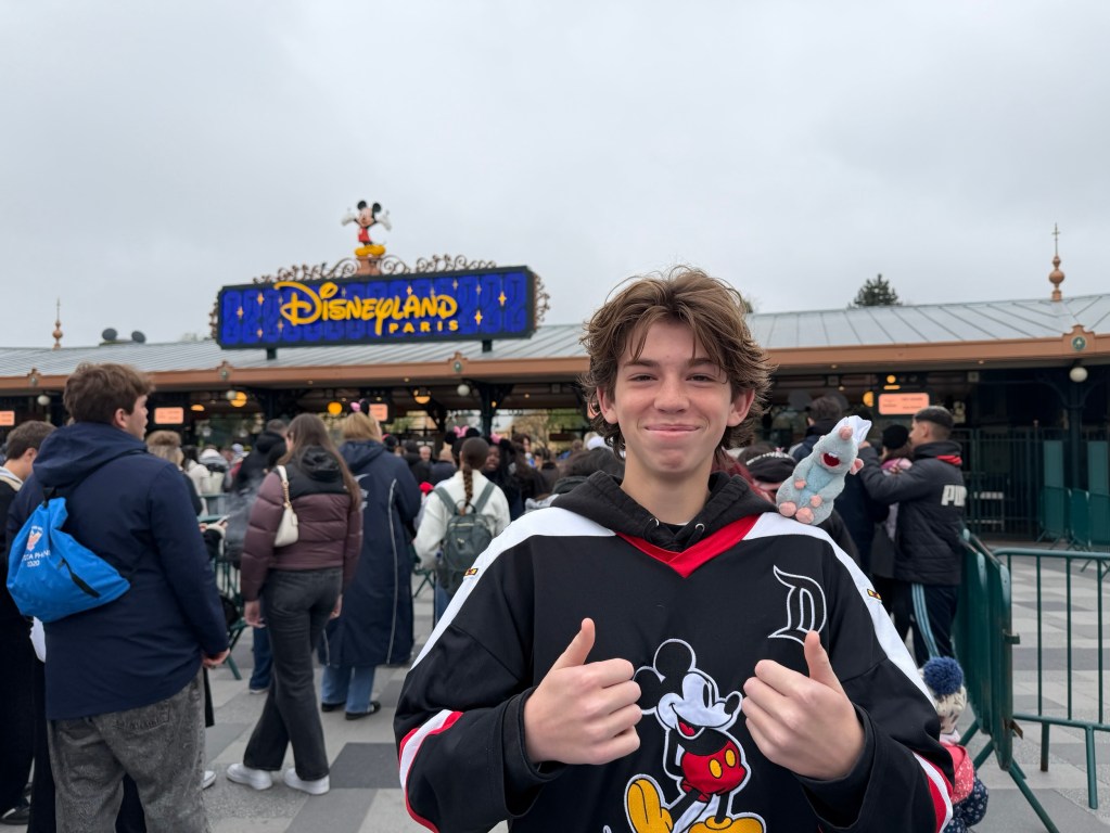 While in Disney Adventure World we rode Ratatouille - some sort of magic puts you inside the movie - inside the kitchen and restaurant while hundreds of waiters and chefs try to smash Remy at hyper-speed. Leo had to do the Tower of Terror - called the Twilight Zone Tower of Terror in France - alone, but he said it was good. We played the Spider-Man W.E.B. Adventure together as a team. Instead of shooting lasers at targets, we had to pretend to “throw” spider webs out of our fingers and somehow the magical Disney engineers have figured out how our flying fingers kill spiders and save the day. Lucy had the most points! The Cars ROAD TRIP was kinda a bust. You are placed on a tram and it kinda goes nowhere, past old Highway 66 road signs and then the trams stop in front of an oil pumping station(?) and there is an earthquake and the tram starts shaking and swaying and a dam must break as an entire lake of water seems to stream down from behind the scene and an oil truck slides down towards the tram. Oh, there are explosions and fire everywhere and - poof - it is over. Twenty seconds of the best disaster film you could imagine on a ten-minute ride.