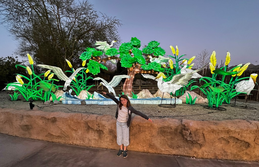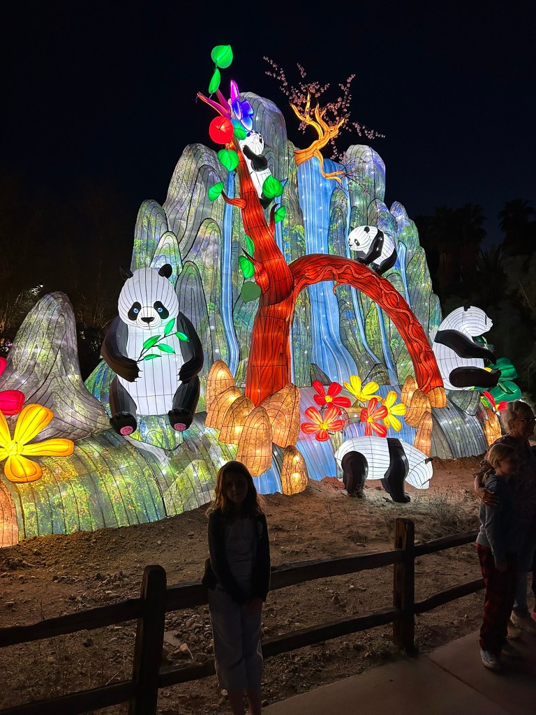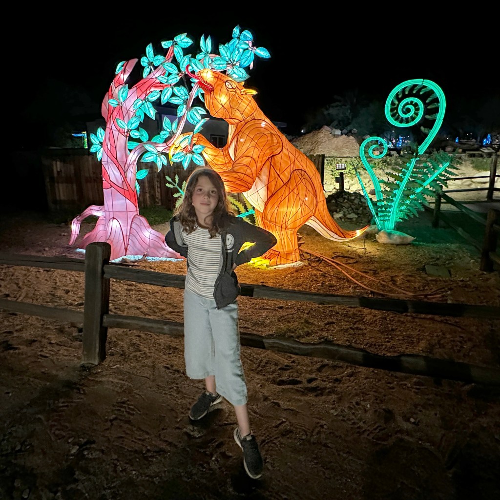 There isn't an age limit for Zoo Lights. Everyone enjoys. It wasn't too crowded (timed entrance), it wasn't too expensive (ample free parking), and there are plenty of places to sit and rest, or grab a snack. The animals were on display (we saw so many cheetahs!) until dark. Really a great evening and I had well over 10,000 steps for the day.