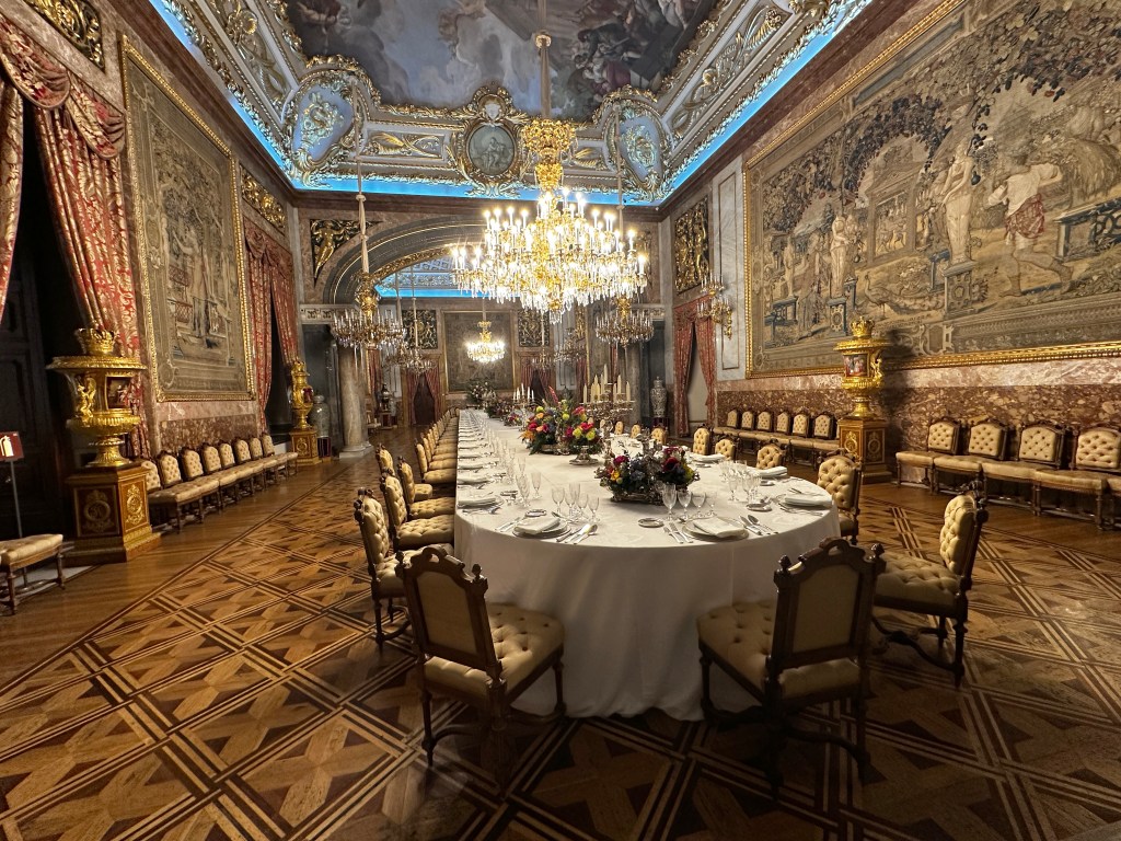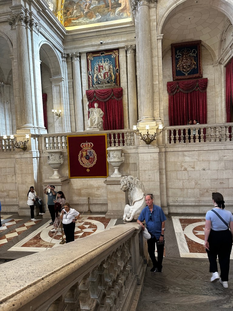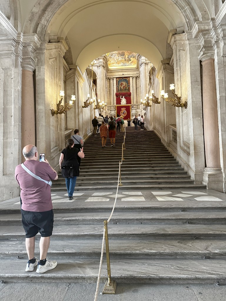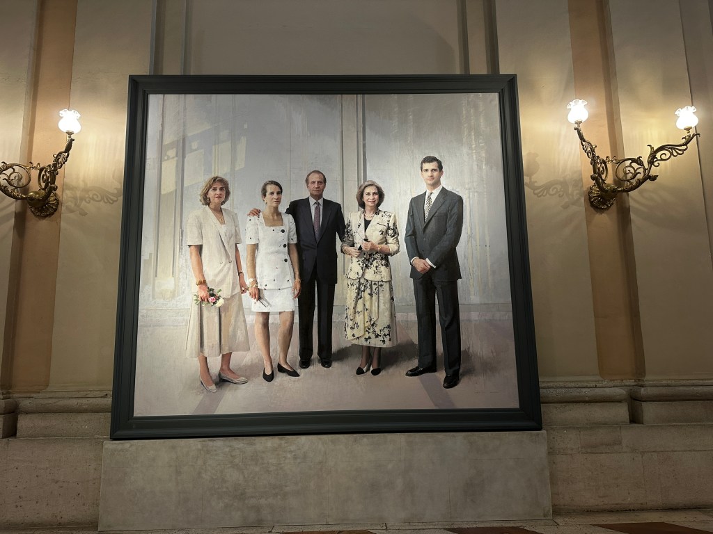 Exiting the palace, guests are bid adios by (a photo of) the King and Queen. Felipe VI has been king since 2014, when his father abdicated. The King of Spain is head of state, and commander in chief of the Spanish Armed Forces. The King and Queen have two daughters. Princess Leonor, born in 2005, is heir to the throne. A second daughter, Infanta Sofia, was born in 2007. PS: The royals do not reside in this Royal Palace, but live in a series of other palaces on the grounds of Zarzuela Palace, outside of town.