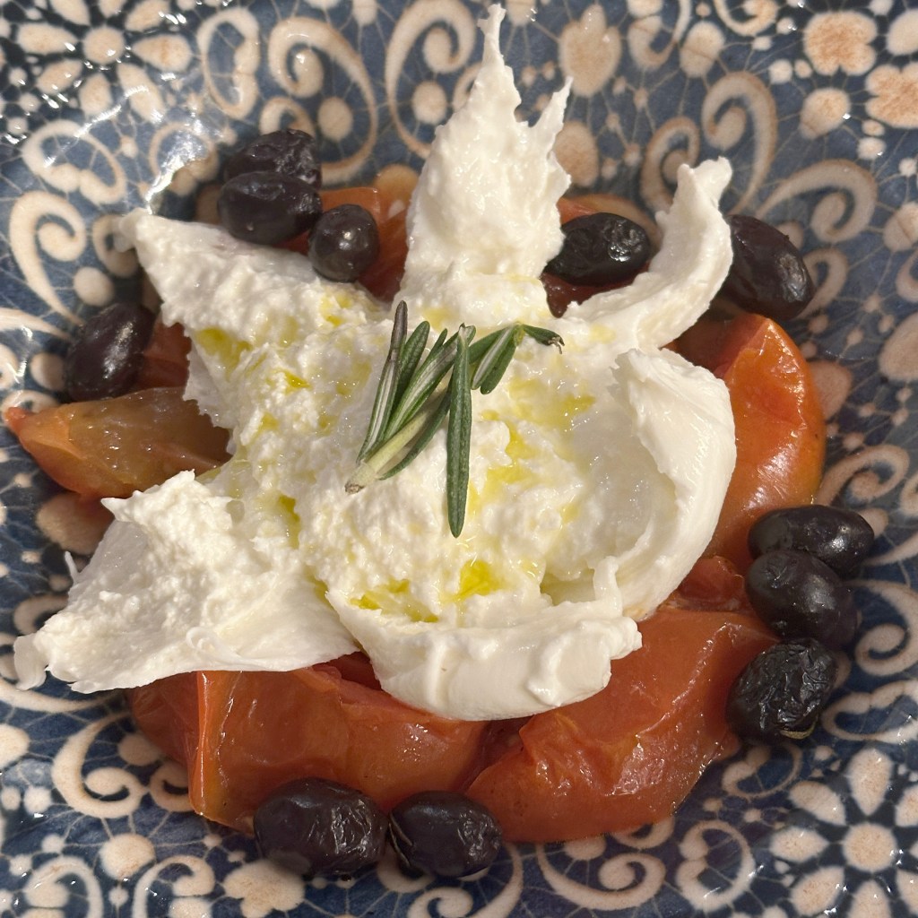 We've had cod fritters prior and these were just as kinda-gummy as the rest. These cod fritters were not overly salty as they can sometimes be. The burrata salad was quite nice though.