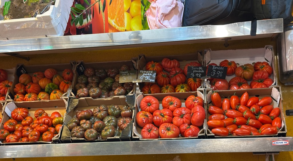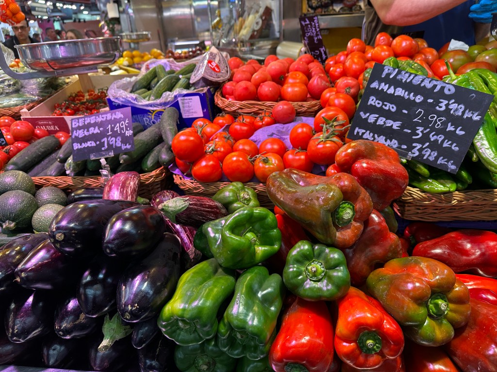 After visiting the Picasso Museum, we wandered around the nearby Santa Caterina Market, an open food market, with vegetable, fruit, fish, meats, spices, chicken, olive oil, cheeses, olives, eggs and everything one would need to create a delicious meal.