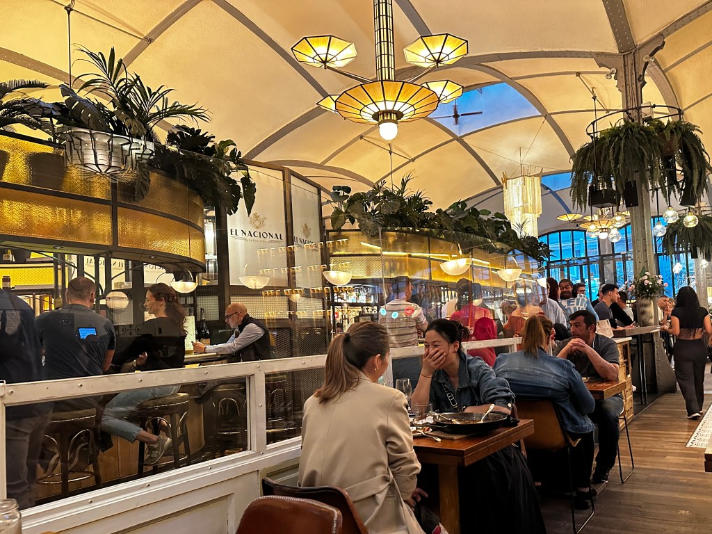 Finally back to our hotel and a good siesta! Much later we ventured out searching for more tapas (when in Rome!) and visited one of the most popular restaurants in town, El Nactional. The restaurant is actually four (or maybe more) different dining rooms, in one massive tent-topped pavilion. There is a bistro (mostly serving meats), a seafood section, a pasta section and a tapas area. In the middle is a huge wine bar.