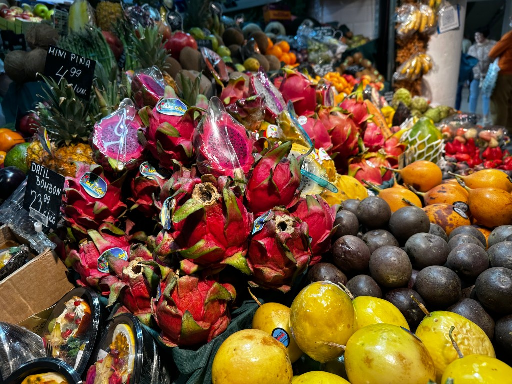 This a busy market where locals buy their foods and most vendors wanted nothing to do with cruise ship tourists, nor their cameras, so I was very discreet. After the market (we were in there for over an hour!) we began walking to the old Santa Cruz barrio, a neighborhood built below the fort above the city. The houses are white, the lanes are narrow and steep (no cars), the houses are well-maintained, and decorated with colorful tiles and flowering plants.