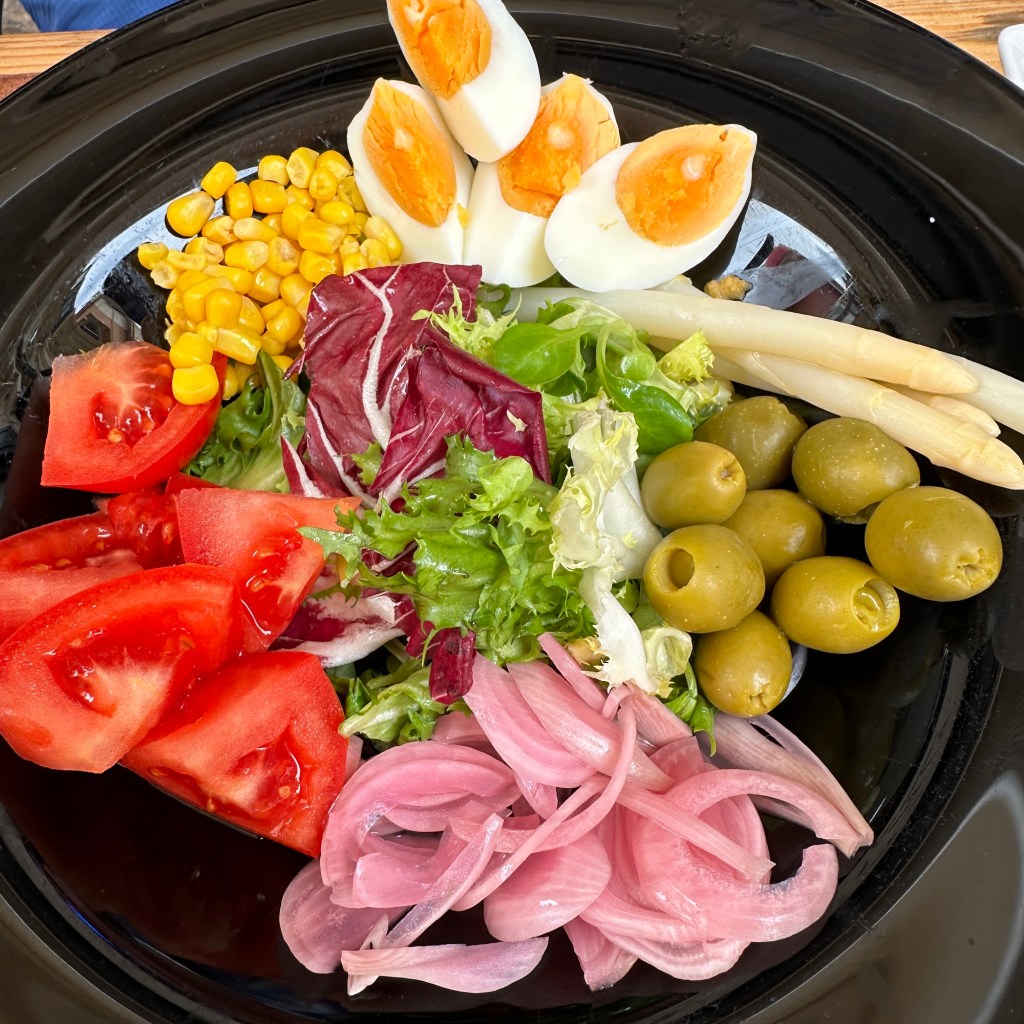 We finally stopped for lunch at about 1p, dining at a little family-owned place in a pretty square. Would you believe we had patatas bravas AGAIN?