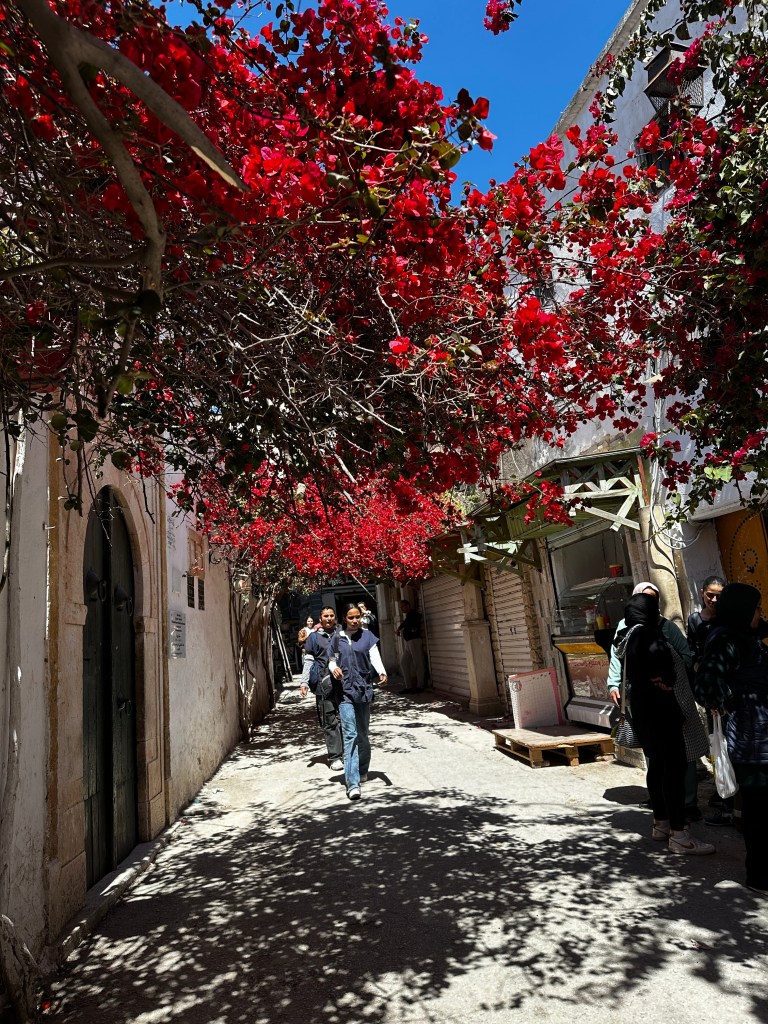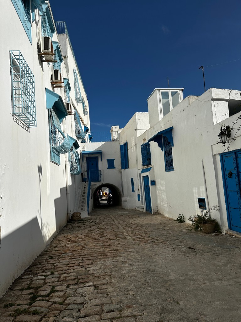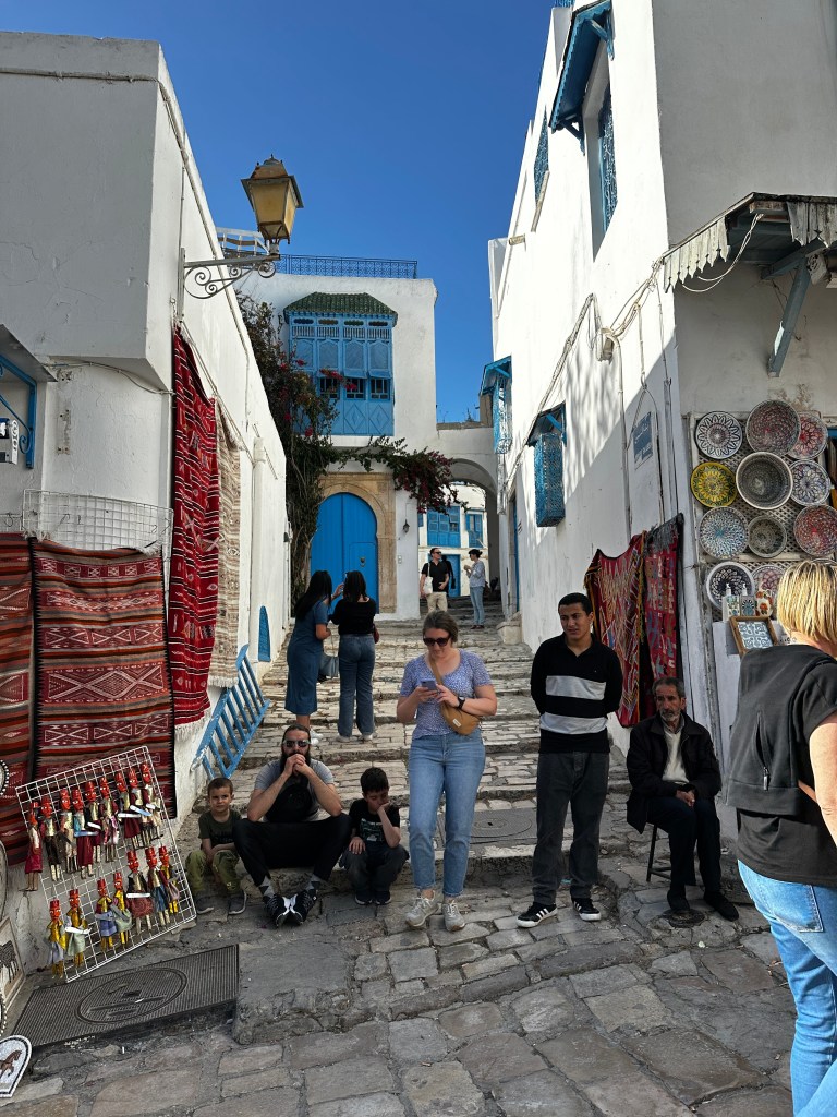 Our last stop was to the old city of Sidi Bou Said, another UNESCO World Heritage Site, where years ago the town agreed to paint all the buildings white and paint all the trim blue. The streets are one-car wide and meander into another maze of humanity. We were able to walk the streets and shop, but again, nothing interested us and the shopkeepers were so aggressive, it really did not make for a pleasant experience, where everywhere else, the shopkeepers had been so pleasant.