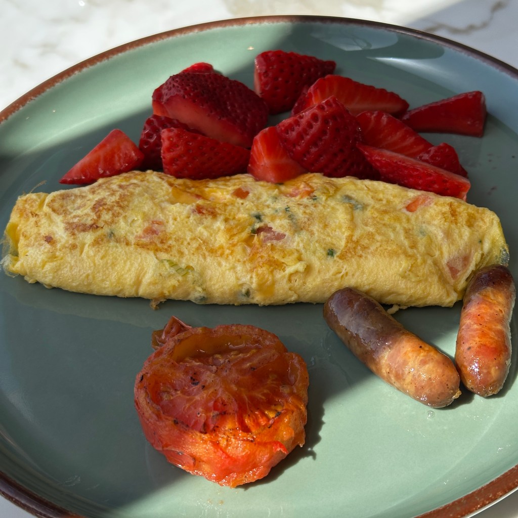 Today was Easter and the crew were serving a proper a brunch. I don't know if they have a brunch every Sunday or not, as this was our first Sunday on the ship, or because of Easter. The brunch was held in the "buffet" - but as I said, there is no buffet on this ship. All the food stations are served by staff. Today, in addition to the usual salad stations, burger station, sushi, charcuterie, breads, etc., there was an omelet bar and a taco bar! I haven't had a taco in two weeks and there may have been some sort of withdrawal happening. The carving station had a pork roast, whole chicken, and a rolled ribeye stuffed with spinach. Explora does not mess around when it comes to food.