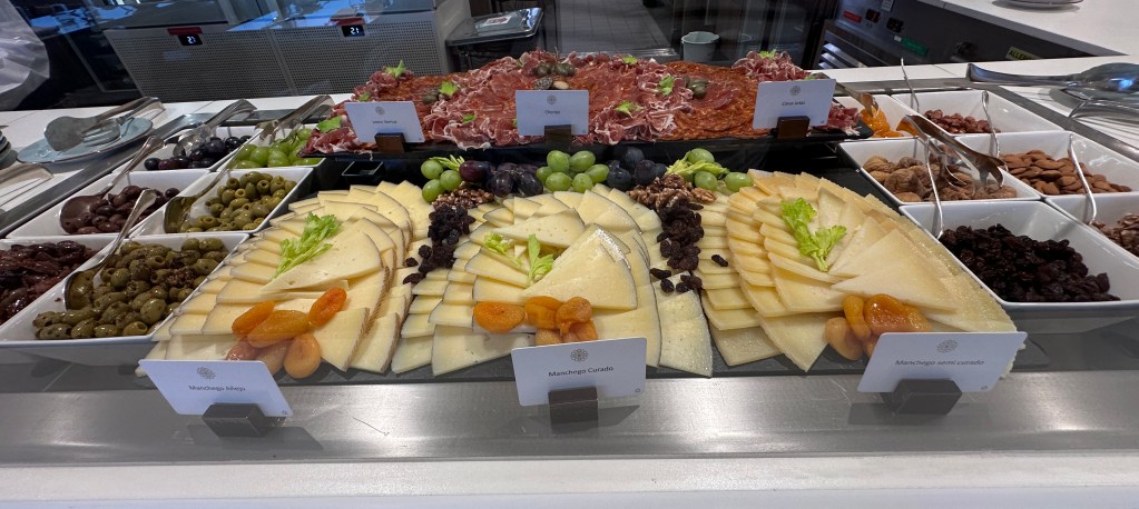 Anyway, bored or not, there is always something to eat on this ship. On at-sea days, the food court chefs prepare dishes from a certain region or country. Today it was Spain, and since we only had coffee in our cabin this morning decided to sample our way through Espana. The usual sushi bar, pizza, salads, and burger bars were still available, but the appetizers, entrees, and desserts were Spanish - they even had paella! A few photos from lunch: