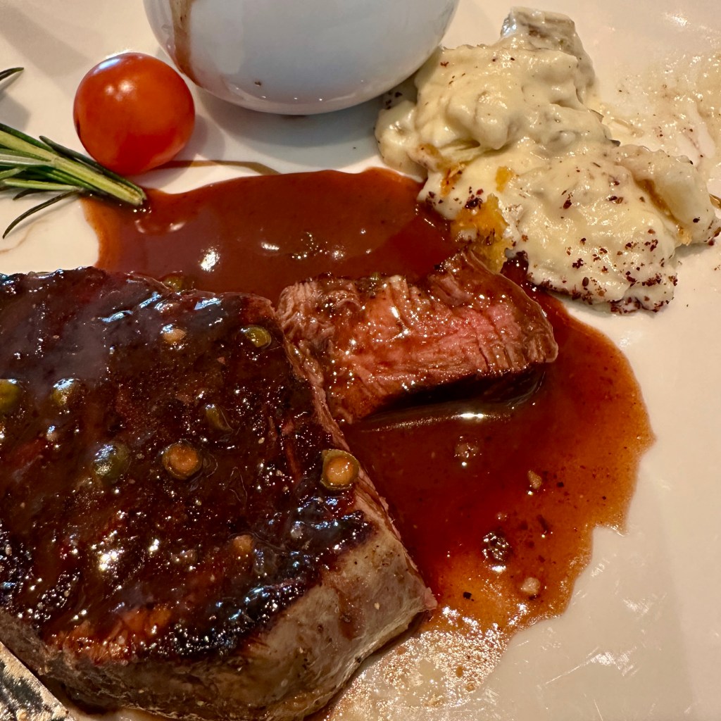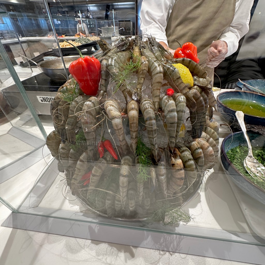 Tonight we had reservations to try Marble & Co., the steak house on the Explora II. It was our first time to dine at this restaurant. The decor is very much "this is a steakhouse" and the servers are wearing Levi jeans. Caesar salad is made table-side: