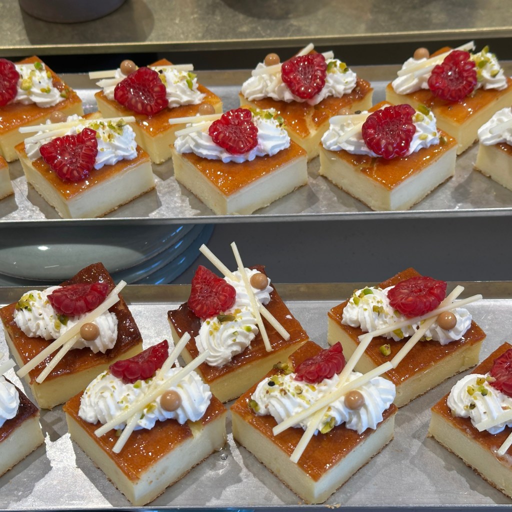 Small (4 bite) portions of Basque Cheesecake (left), and espresso cheesecake (right). They also offered cookies, Tres Leches cake and platters of fresh fruits and fruit parfaits. It. Never. Ends.