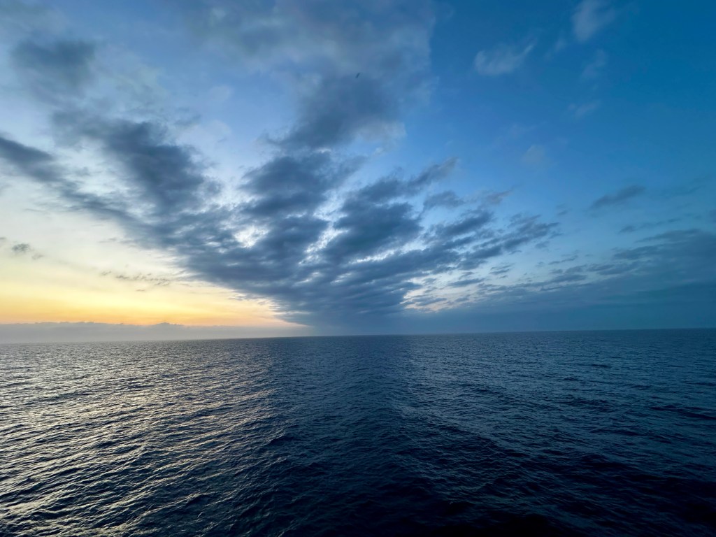 At Sea: As I wrote last night, the Explora II is simply crawling to Gibraltar. It is just over a 200 mile passage and our ship is now going 6mph. It seems we are only floating, even the porpoise are swimming faster than our vessel. No trouble for me - I am a needlepointer. I think The Birthday Boy gets a bit bored. He isn't an idler, but is on his second bestseller, and has a book of crossword puzzles to keep him occupied. The ship Starlink wifi was out this morning. Not sure if our wifi woe was due to the major power outage in Spain and Portugal. All back to normal now.