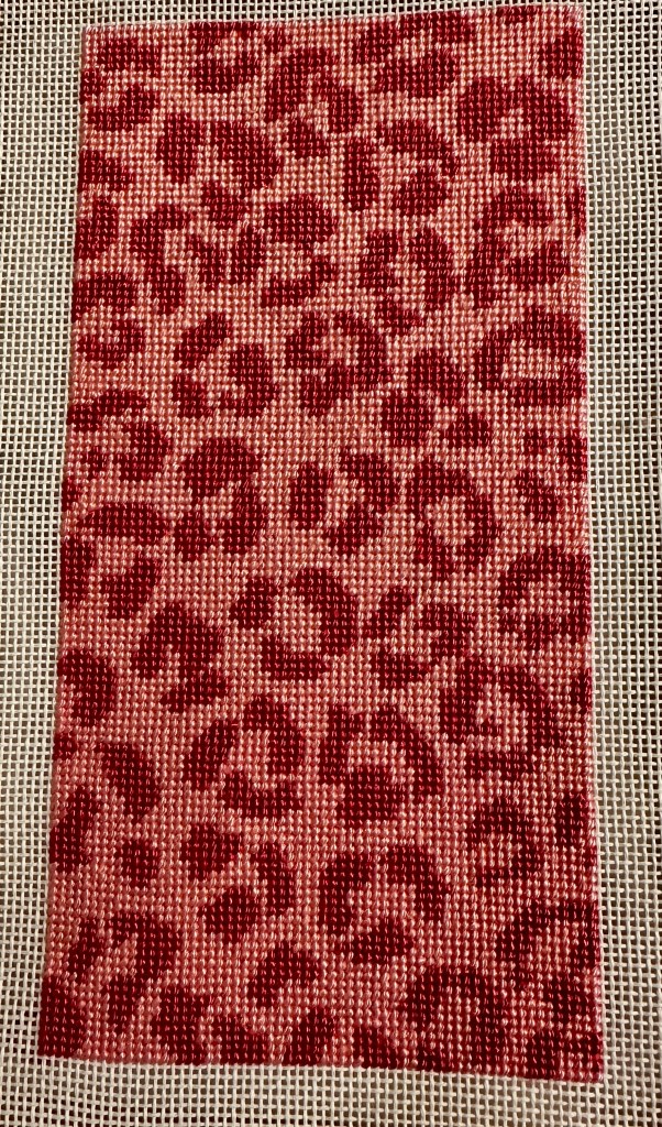 And guess what? I finished one side of the sunglass case today! This took months, as it only gets stitched when I am traveling. Purse Project. (Must admit to never ever seeing a pink cheetah.)