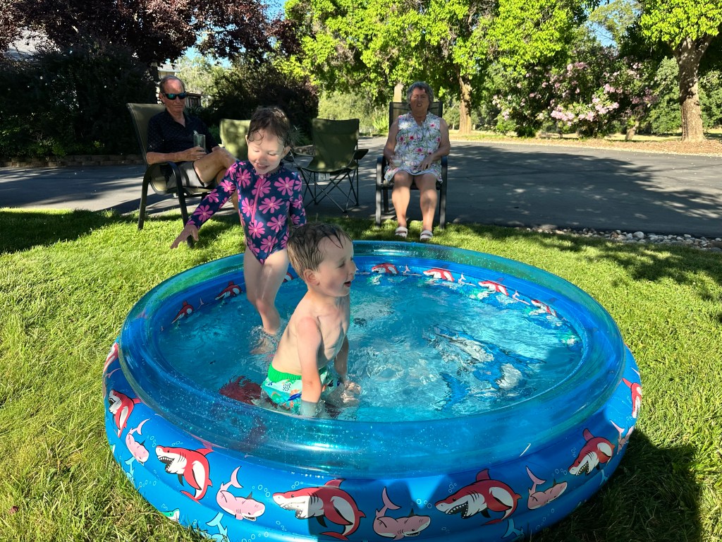 Due to the heat, Brother Steve blew-up a pool for Brother Billy and Ginger's grandchildren (daughter Megan and John's kids).