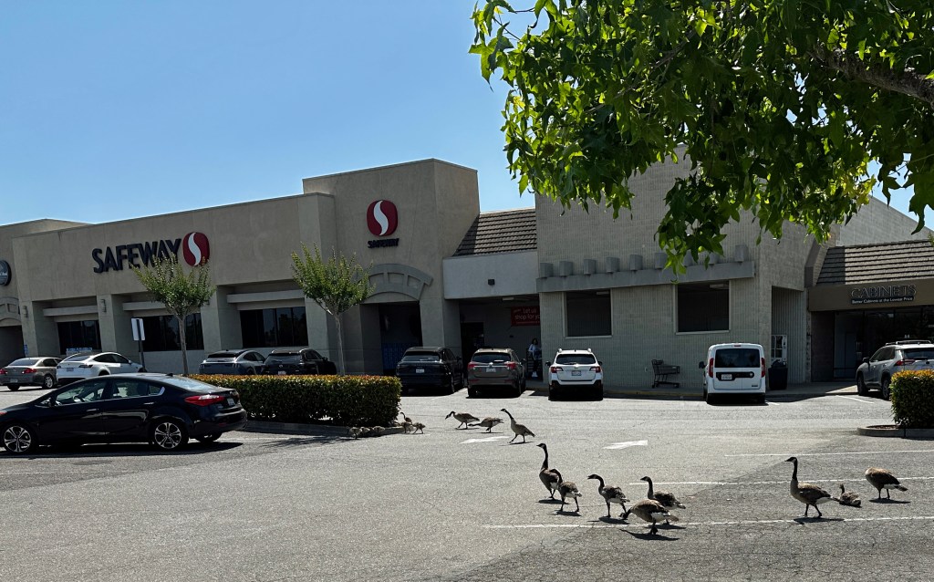 Today, we drove west to Bodega Bay - stopping at a grocer to fatten-up our larder as we will be alone and family-free for the next few weeks. Happy we did, as we found a small flock of geese with NINE babies in the grocery parking lot.