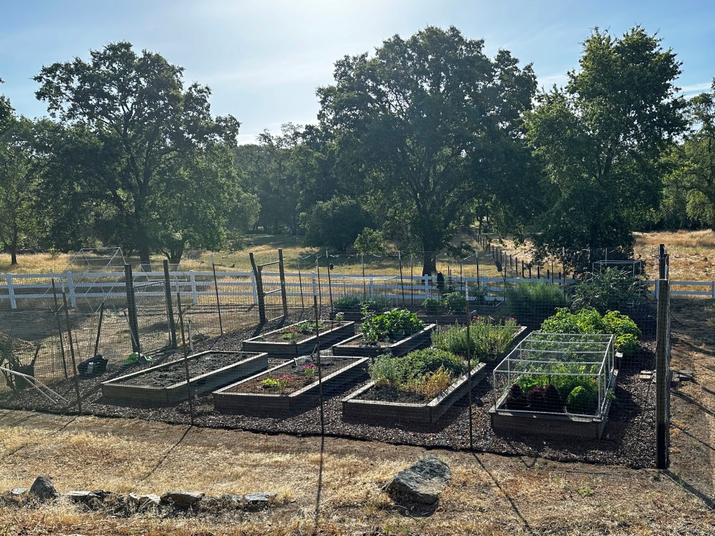 Red Bluff, California: The gardeners get up early. Not because they want to, but because the roosters and donkeys begin telling them it is time to get out of bed. Plus, it is best to water before it gets over 90 degrees. People living on ranches and farms in the Sierra foothills are slaves to the weather, but they are so rewarded with amazing bounties of their labors (as are passing-by relatives).
