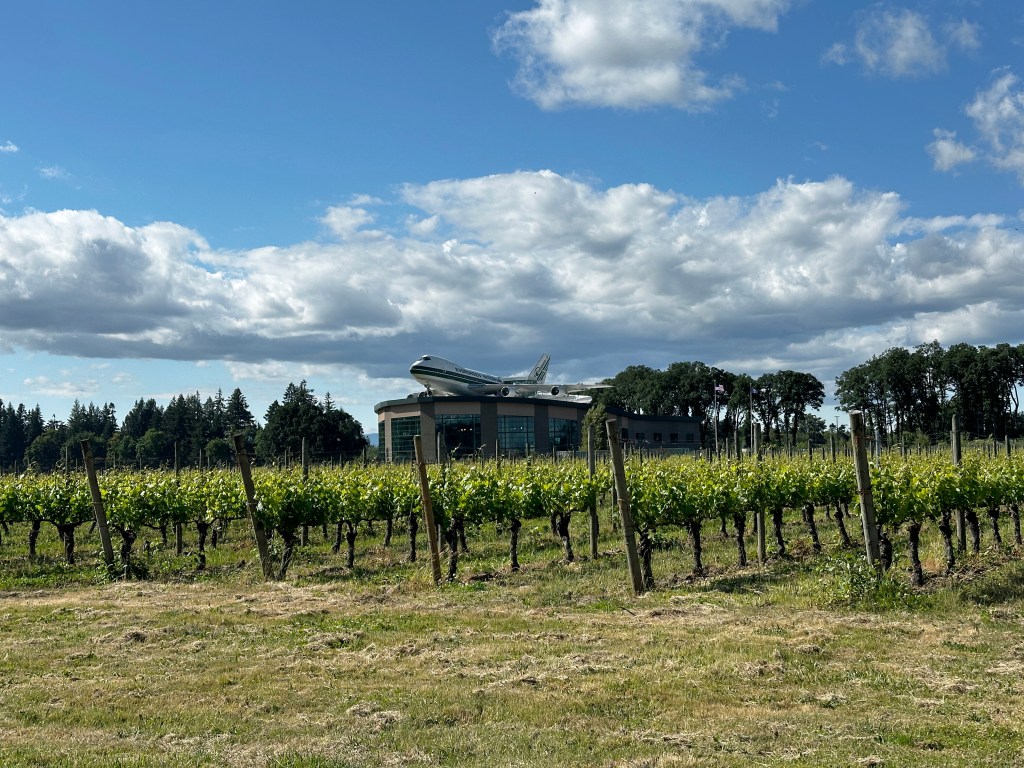 In the past two years since our last visit, the fields around the air museum have been completely planted in wine grapes. Two years ago, the fields in front of the museum were grapes, but now every inch is covered in grapes vines.