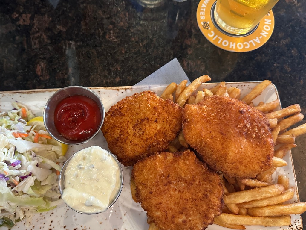 After settling-in and checking out the beach, we went to the Pelican Brewing Company across the street from the RV park (and in front of Kiwanda Haystack Rock) for lunch. Fish & Chips, of course. AFTER I had left much of the meal unfinished, the waiter told me they have a menu for Kids & Seniors. Now he tells me.