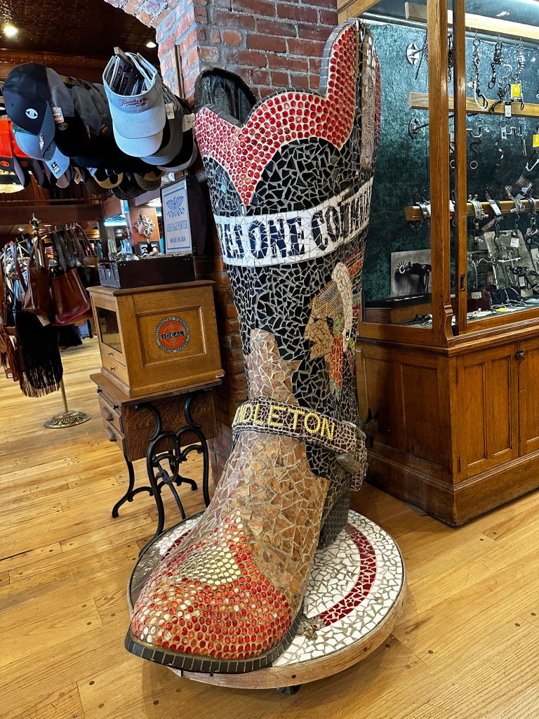 I can't really say if Hamley's is a retail store or a museum. It is also a working saddlery, making new saddles, repairing old. Making ropes, and producing all sort of other things cowboys and cowgirls use. The Hamley family also have a popular steak house and now a wine bar. My My! (NOTE: the Hamley businesses are now owned by the local Umatilla Tribe.) The statue (above) of Chief Joseph, titled Rolling Thunder, as this was his name as a child. It was cast by famed Oregon bronze artist David Manuel. On our way out of town, we stopped at the Pendleton Woolen Mill shop, but living in Palm Springs pretty-much takes us out of their customer base. The shop also offer tours of the mill, which we have taken previously. It is interesting, but I feel much of their products are no longer produced in Pendleton. (Insert sad face here.)
