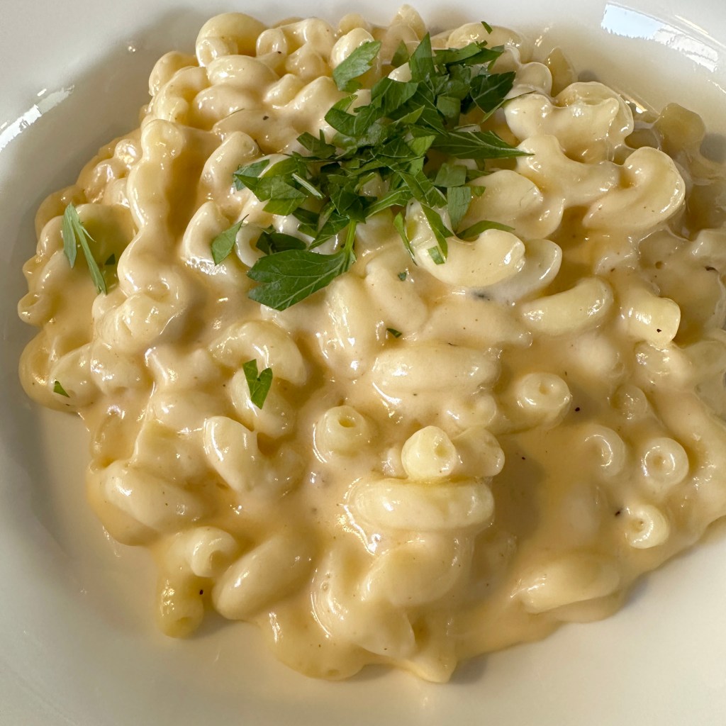 My Driver required low-key (no jalapeno) food tonight. I had quite a bit of odds-and-ends of shredded/not shredded cheeses, so made him a bit of mac & cheese. And a Caesar Salad, as this week is the 100th Anniversary of the Caesar Salad.