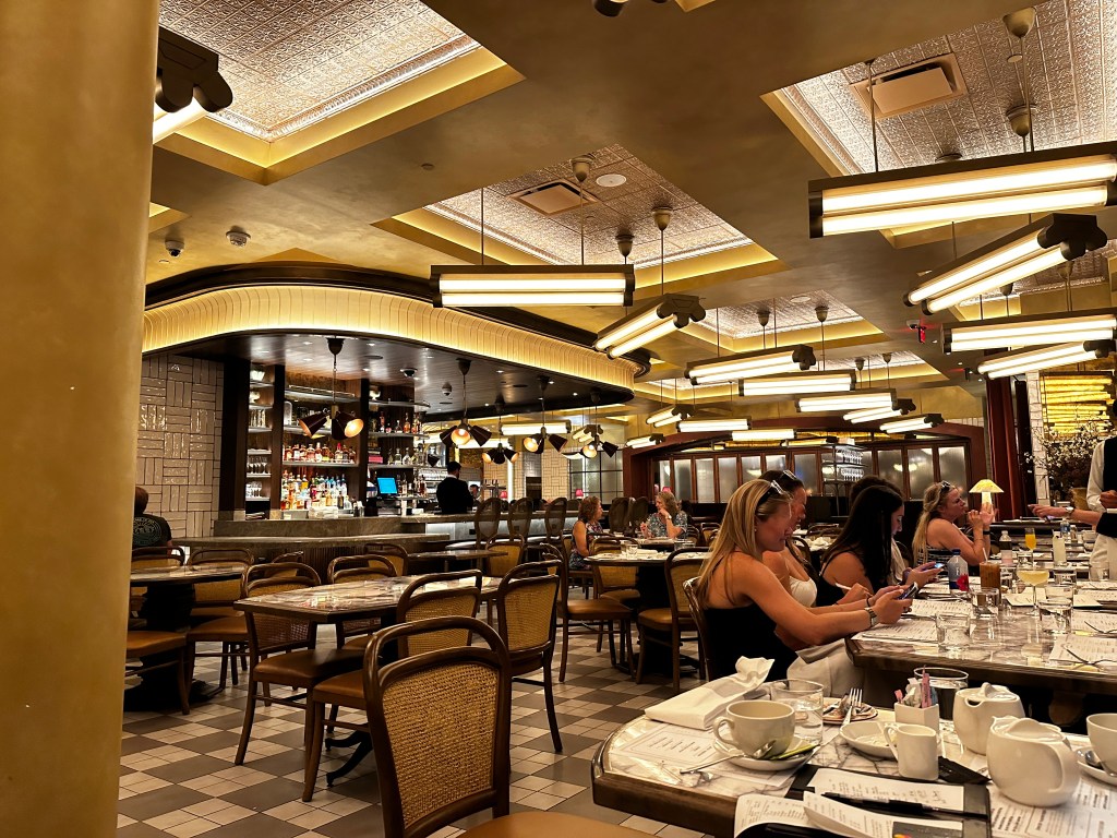 After our brunch, we walked and walked and walked and walked around the Forum Shops in Caesars Palace. So many nice shops. We went into Louis Vuitton as they had an interesting display with the mini-trunks that will hold the medals presented to the winning athletes in the Paris Olympics. Nice souvenir! I thought the mall was more packed than usual, maybe due to the heat, but Dave thought it was just the usual crowd. I wore a mask.