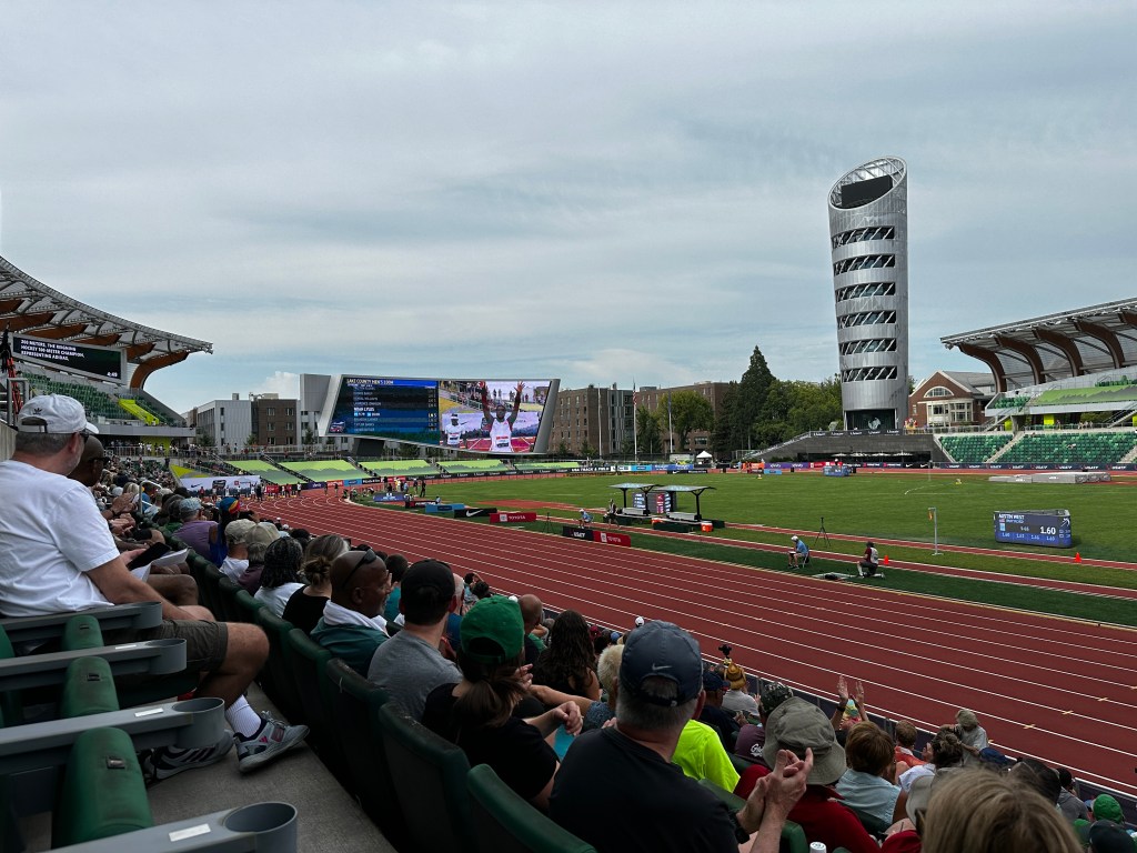 TrackTown, USA: The first day of a big 4-day meet is always a scramble. Gathering our posse. Gathering all the necessary parking passes and wristbands. Settling-in to our seats. Then there is the gossip and athlete speculation. There is a lot of talk about Sydney McLaughlin-Levrone running the 400m, instead of her usual 400m hurdle race. This lady just likes to test herself!