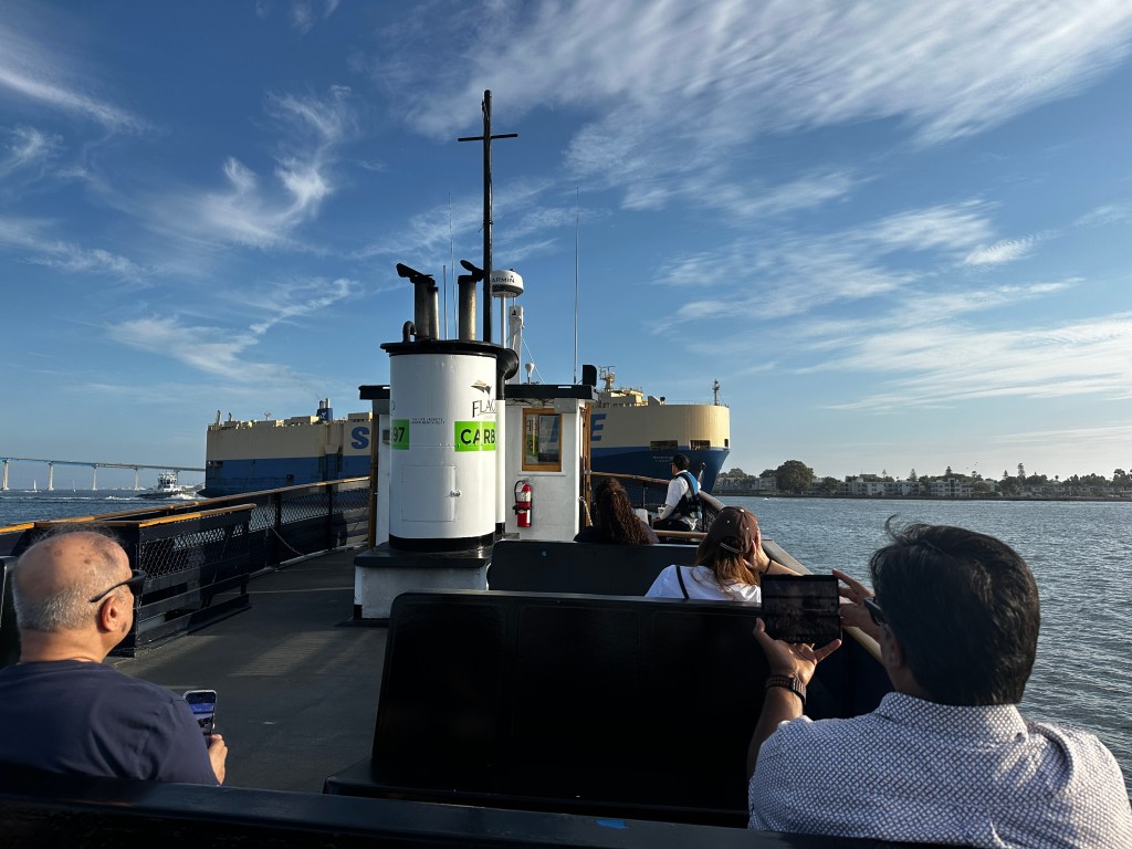 We had a rest in our room after the game, then spiffed-up out of our game gear and walked a few blocks to the ferry terminal and rode out to Coronado Island for dinner. Riding the ferry was a new venture for us - no matter how many times we have been to San Diego. $9 one way per person, dogs and bikes welcome. After we left port, there was a bit of a traffic issue crossing to the island: