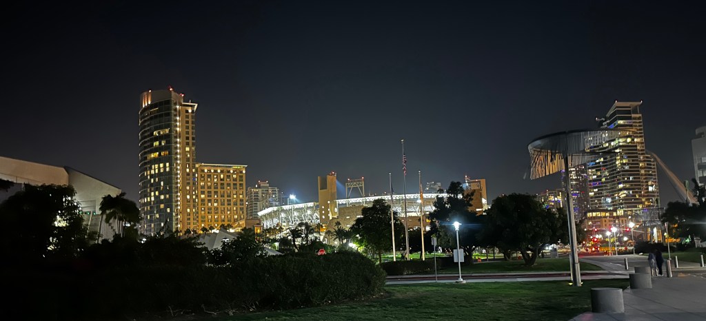 Walking back to the hotel, it was easy to see how close the Omni Hotel is to Petco Park - the hotel is to the left of the ball park: