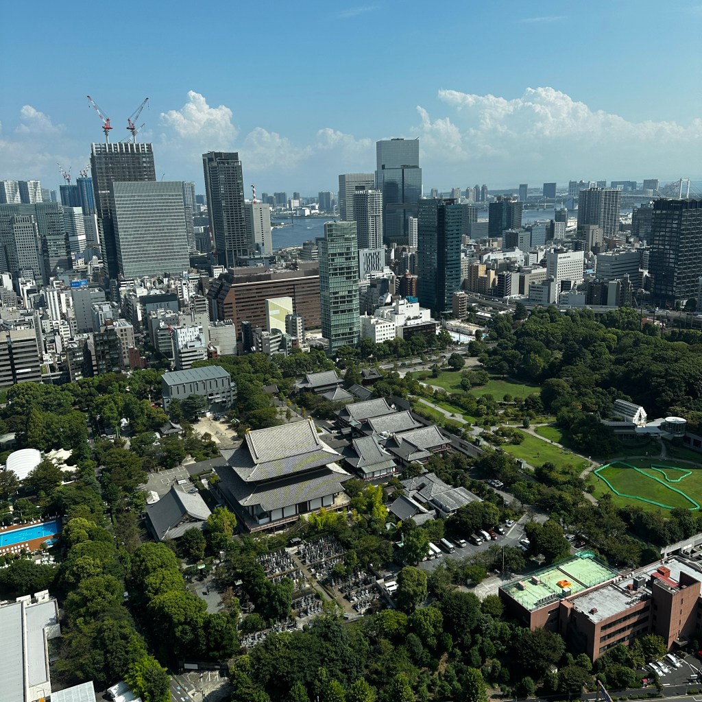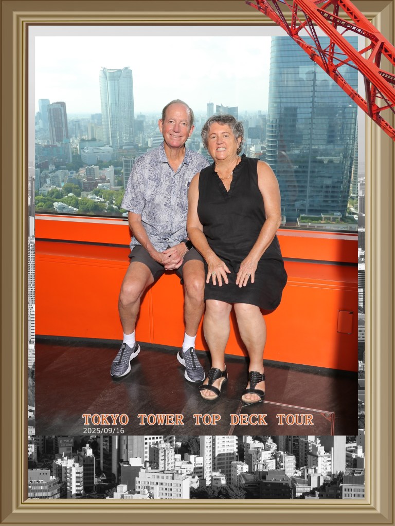 Tokyo, Japan: A very late night last night - and that healthy dinner with Messi - caused us to wake at 9a. Glorious to be able to sleep so long. I think our jetlag is behind us? My tour guide had mapped a route that included a visit to the Tokyo Tower and a large shrine/temple near the tower. We had a few light things to eat in the executive lounge before leaving. Their selection is always varied, and they always have coffee, tea, etc, but lunch today included a few raw veggies for a salad bar, potato salad, croissants and a few tea sandwiches. Whatever - it was enough to get us through our 8000 step trek around Tokyo.