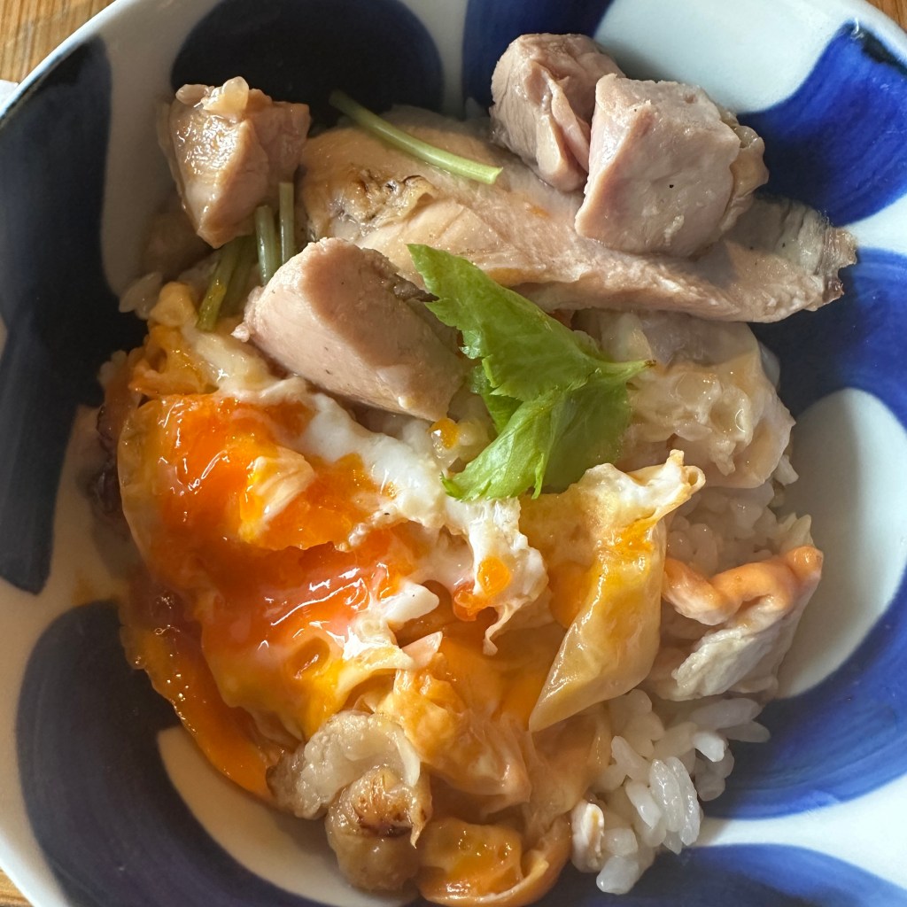 Then a bowl of rice, with even more chicken and an egg plopped on top. I could not get over the deep color of that yolk - way darker than the free-range organic hens lay for my farmers market. Dessert was (I think) some-sort of a panna cotta or maybe just milk jello, with (I have no idea what the turquoise stuff was), and fruit. The small bowl in the center was filled with a lemon sauce for the milky custard below the blue stuff. I ate it all.