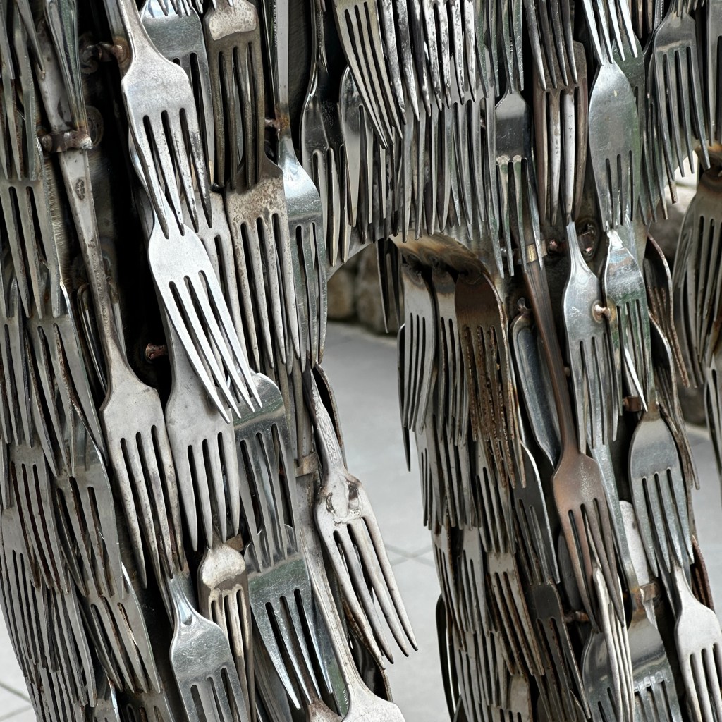 I have posed before at this fork statue made of forks. So clever, and so appropriate at a culinary institute.