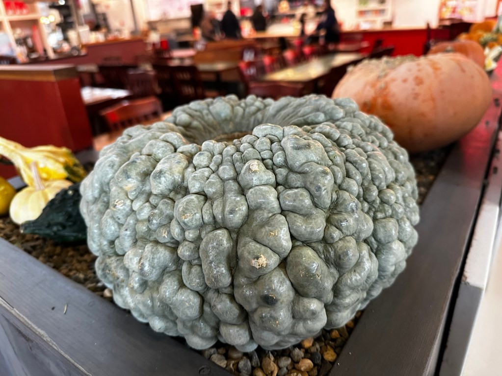 Then we walked next door to the Oxbow Market to buy a few gifts for our favorite daughter. Oxbow is really decorated for fall/Halloween. This squash is just magnificent: