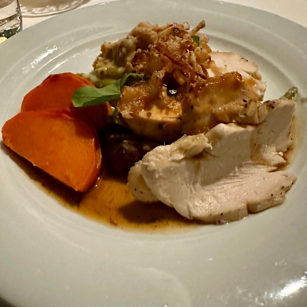 This evening was a bit hectic due to every passenger on the ship wanting to eat in one of the three main dining rooms for a traditional Thanksgiving dinner. (The Japanese, Italian, Seafood, etc. restaurants were not serving turkey.) We started at six o’clock in the Observation Lounge for cocktails and took our time, as other passengers gathering at the bar told us it was a one hour wait for turkey. When we finally went downstairs, the wait was to be 30 minutes, but we were seated in less than 15.