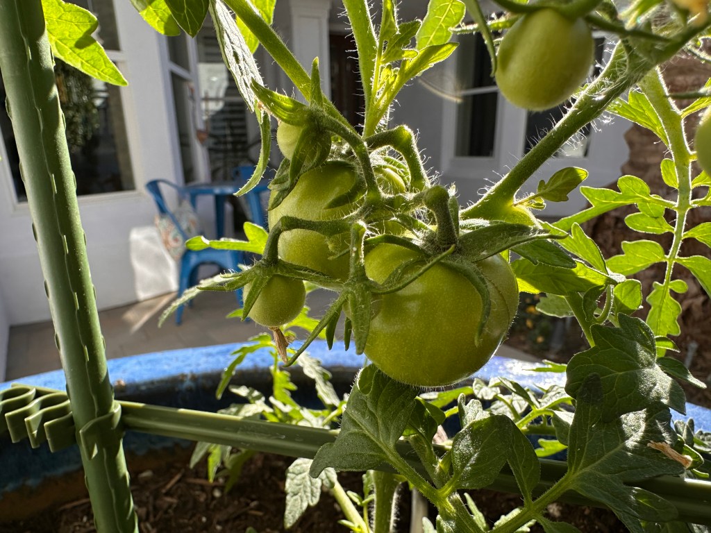 QUICK CHANGE OF SUBJECT: Speaking of warm weather, we already have fruit on our tomato plants!