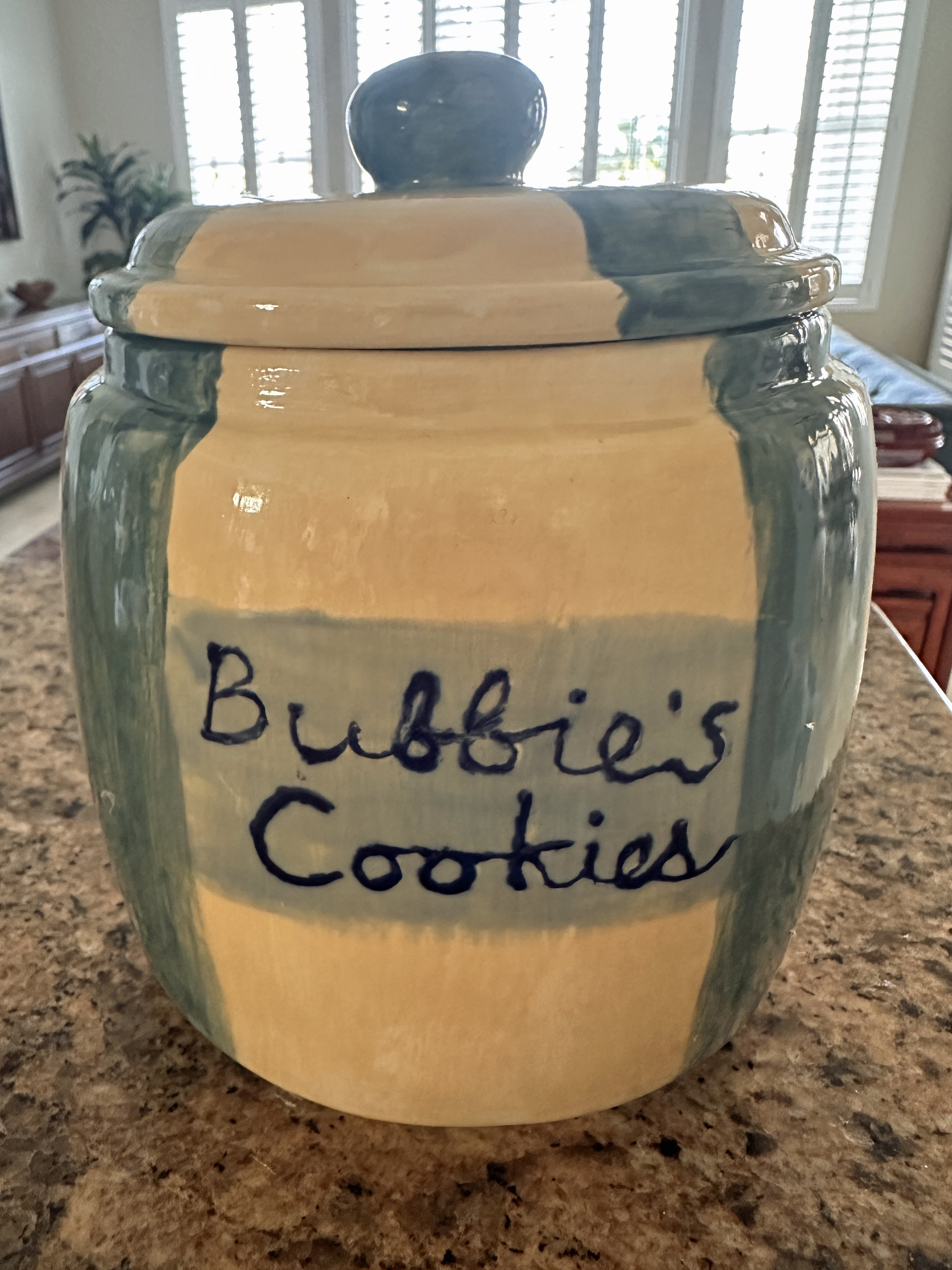 We left when the "pie in the face" situation began. Wow, what a mess! And the howls from the students when their (beloved) teachers were pied. After sushi (where we dined outdoors!), we went back to the house and exchanged Hanukkah gifts a few days early. I think everyone was happy with their gifts. Dave and I received several gifts, but two were very special. Lisa hand-painted a mug for her Dad and Lucy hand-painted a cookie jar for me! So surprised. Yeah, I cried. Not only is is gorgeous, the jar itself is quite substantial (gonna need to get baking!) and the lid has an airtight silicone seal to keep the goodies fresh in this dry climate.