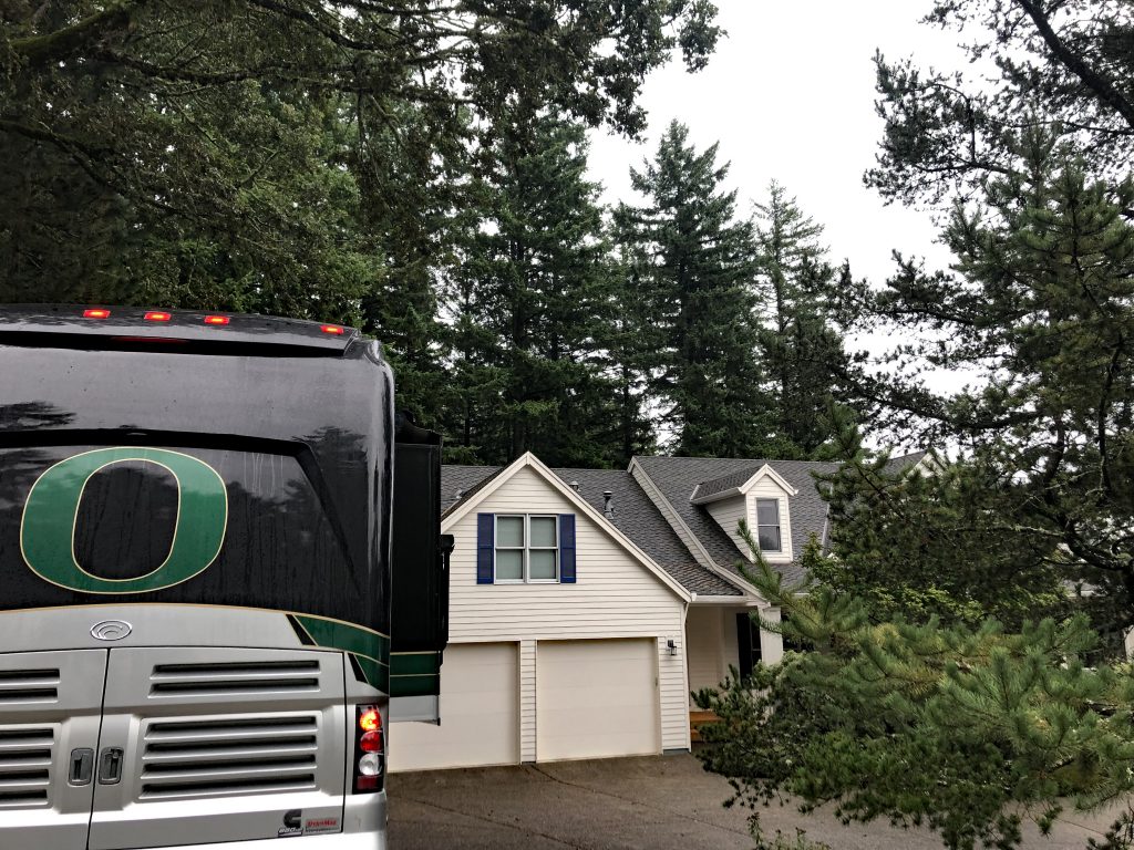 Wilsonville, Oregon: Dave and I fetched our motorhome from her storage garage on Sunday (September 15). The Magna Peregrinus has been occasionally housed here for around ten years – a great/secure facility, with a 30 amp hook-up, but so very far from our house. Options are few and far-between for RV storage in the Portland metro area. We were lucky to get this spot, and it served us well.