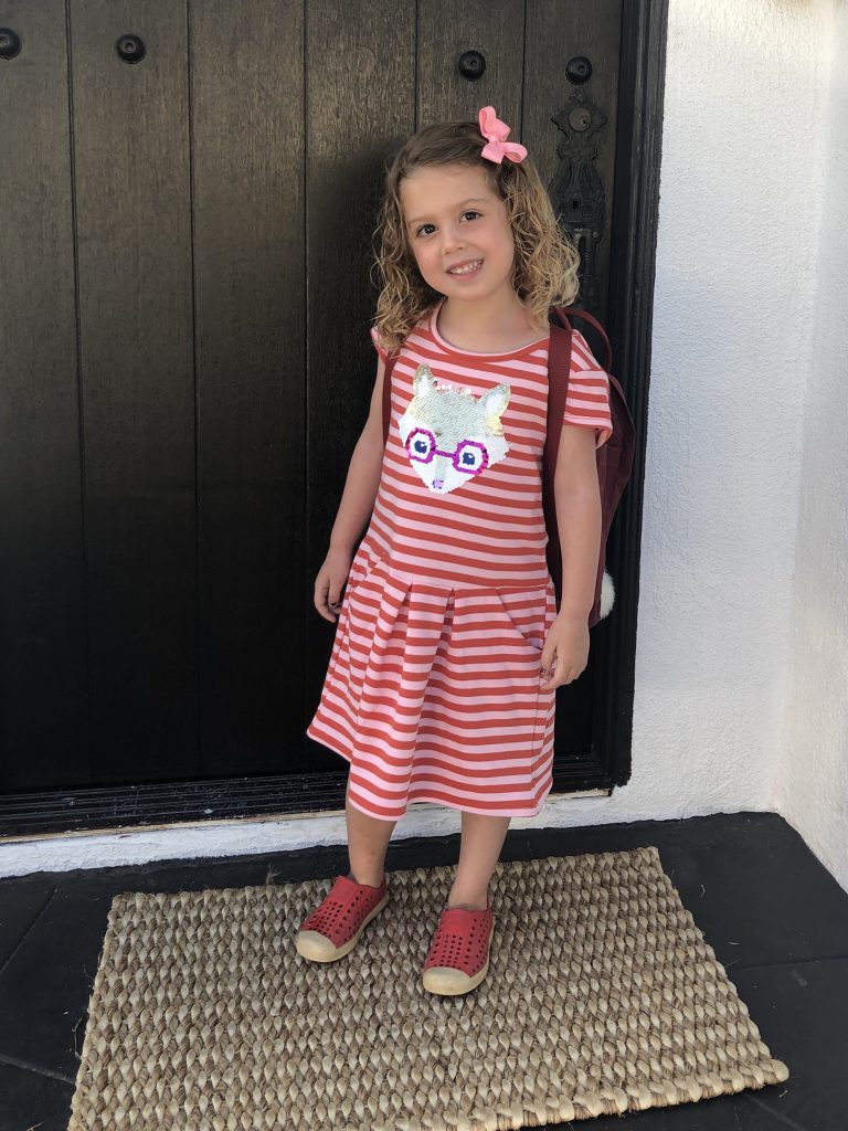 Leo is too cool for school! After school, we FaceTimed with the kids. Lucy was simply ecstatic and literally rolling around on the sofa – gushing with excitement as she told us about her class and her teacher. Very dramatic, this one. She told us which of her friends (from pre-school or ballet) are in her class and then said she loved homework. Leo rolled his eyes.
