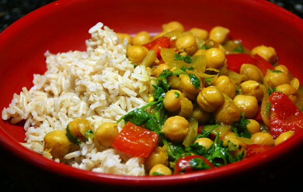 Chickpea Curry with Cilantro with brown basmati rice