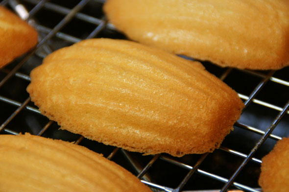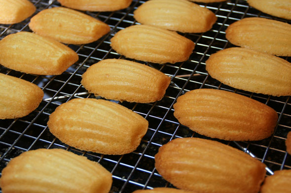Bake for about 13 minutes or until shells are nicely browned around the edges. Remove baked cookies and unmold immediately. Cool on wire racks. This recipe makes 3 dozen Madeleine cookies. If using the same pan to bake each dozen, don’t forget to grease the pan again before baking the next dozen.