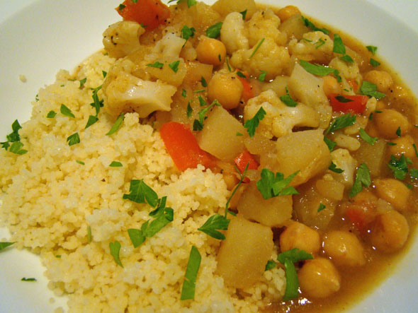 Spicy Garbanzo Stew, served with couscous