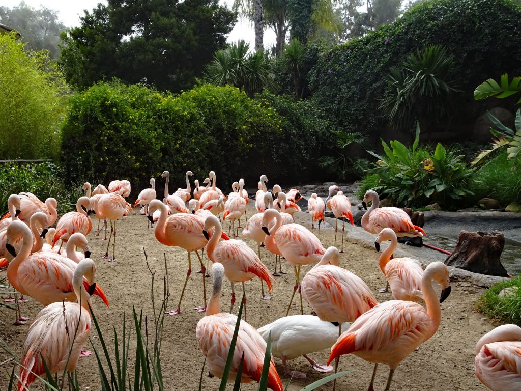 Please notice the white goose in the center-bottom of the above photo. The flamingos were “escorting” the poor goose out of the area! Move along – you are not welcome here.