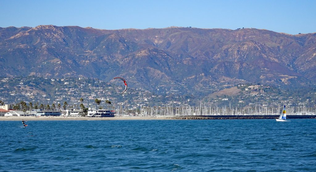 Lucy volunteered to hold my sail-away toast while I snapped this photo. The sun had finally burned-away most of the morning fog and we cruised from the embarkation at Stearns Wharf, north to the harbor, then south to Montecito, finally returning to Stearns Wharf. 90 minutes in all.