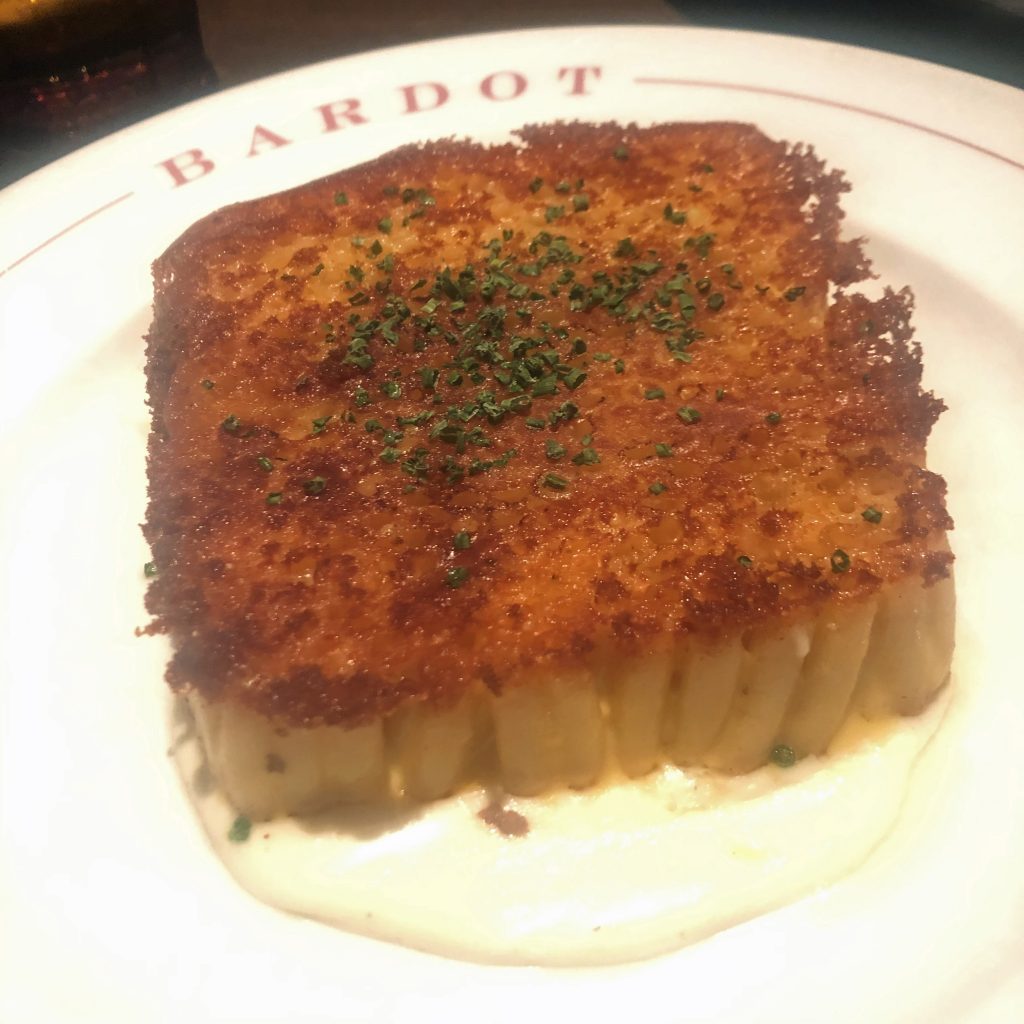 Bardot serves the most amazing mac & cheese! They use cooked bucatini (straw-shaped) pasta, lay it length-wise in a loaf pan, drench it in mimolette cheese, then chill it overnight. When an order is placed, a portion is sliced from the loaf, coated with breadcrumbs and broiled. It is a most unusual presentation and absolutely divine.